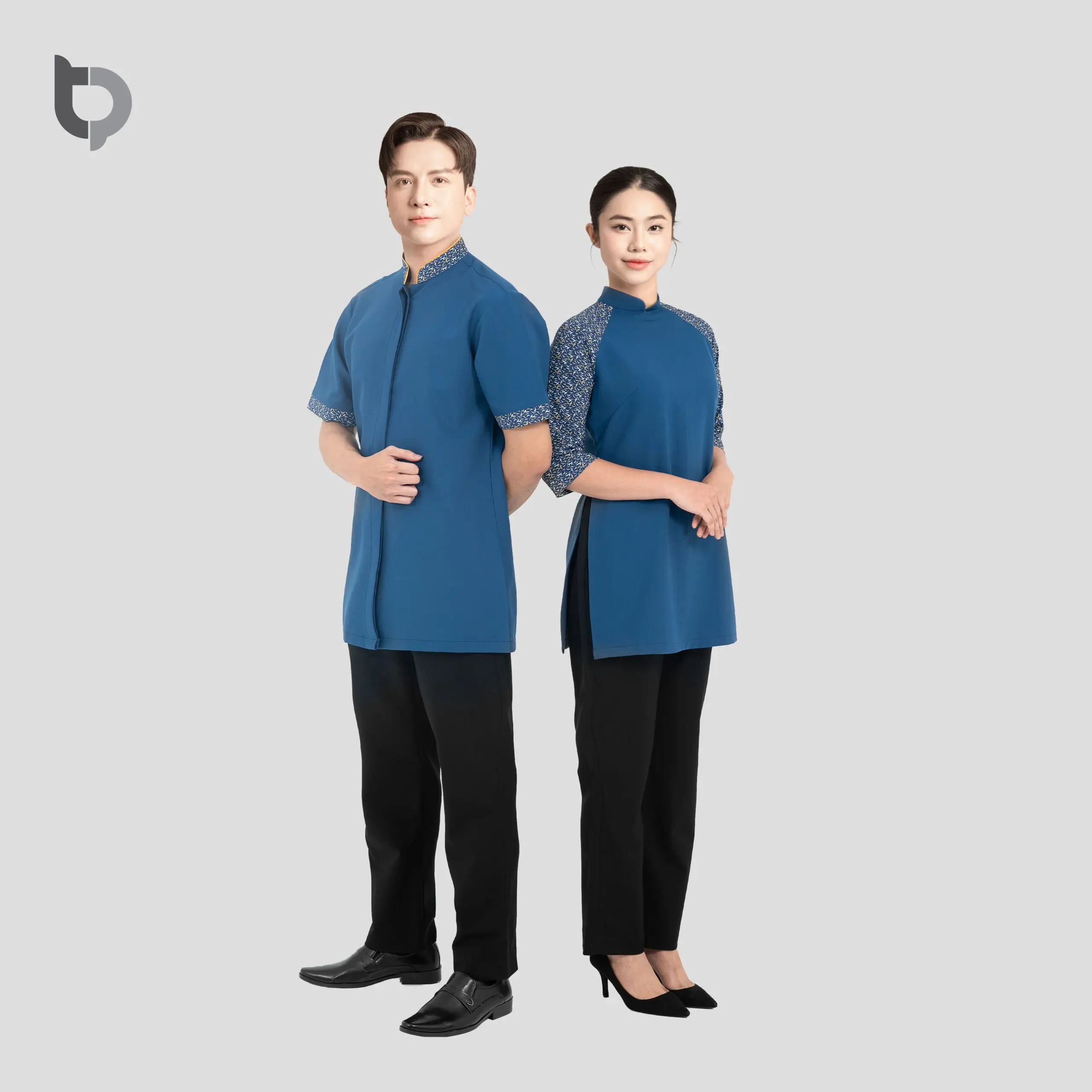 Mô tả: Mẫu đồng phục lễ tân BTP 01 là sự kết hợp giữa vẻ truyền thống và nét hiện đại, mang đến sự sang trọng và chuyên nghiệp cho đội ngũ nhân viên nhà hàng.