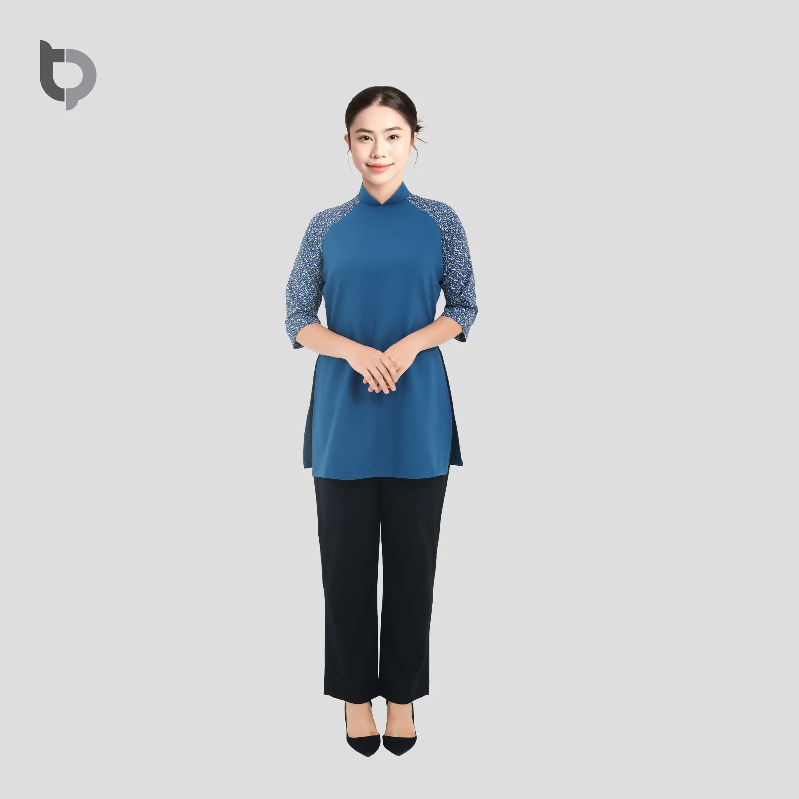 Chất liệu: Được may từ sợi vải cao cấp với độ bền cao, thấm hút mồ hôi tốt và ít nhăn. Đồng phục lễ tân BTP 01 có khả năng kháng khuẩn, chống bám bẩn, dễ giặt và nhanh khô, phù hợp với môi trường làm việc năng động. Một số mẫu sử dụng vải tre hoặc microfiber nhẹ nhàng, thân thiện với da và thân thiện môi trường.
