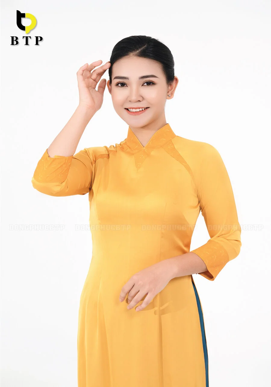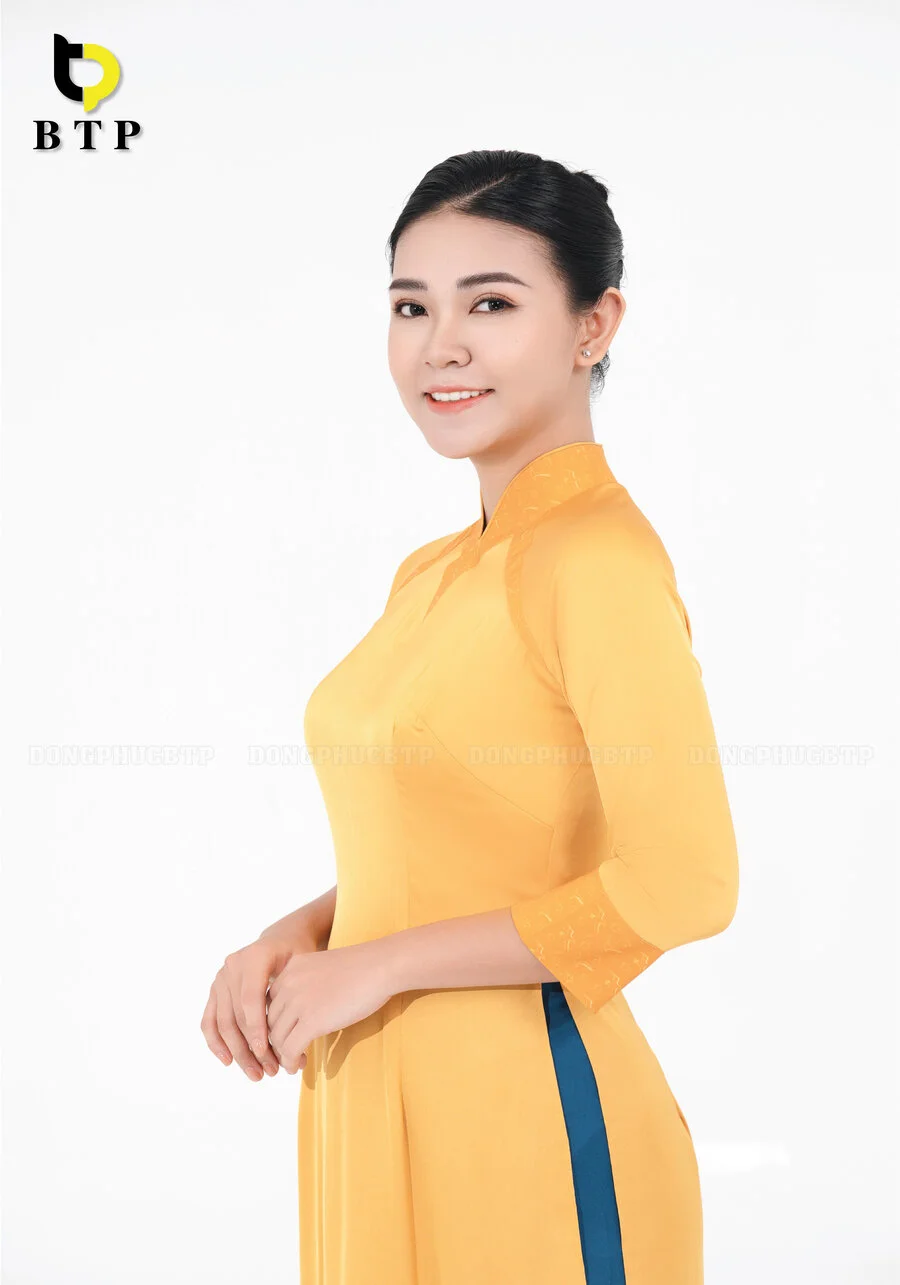 Đồng phục lễ tân 03 cao cấp, mềm mại, thoáng khí, tạo form dáng thanh lịch. Vải có độ bền màu cao, thấm hút tốt, phù hợp môi trường làm việc chuyên nghiệp.