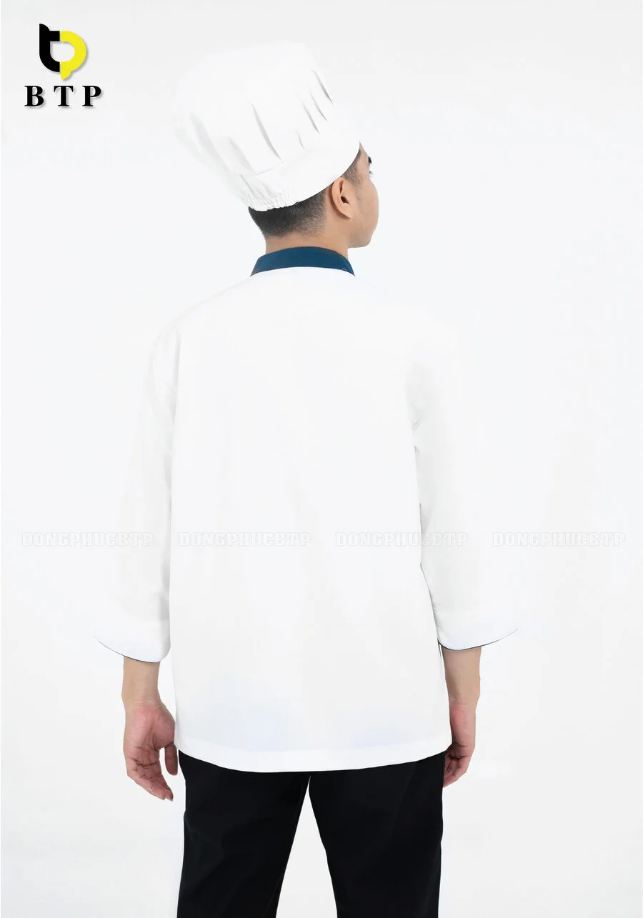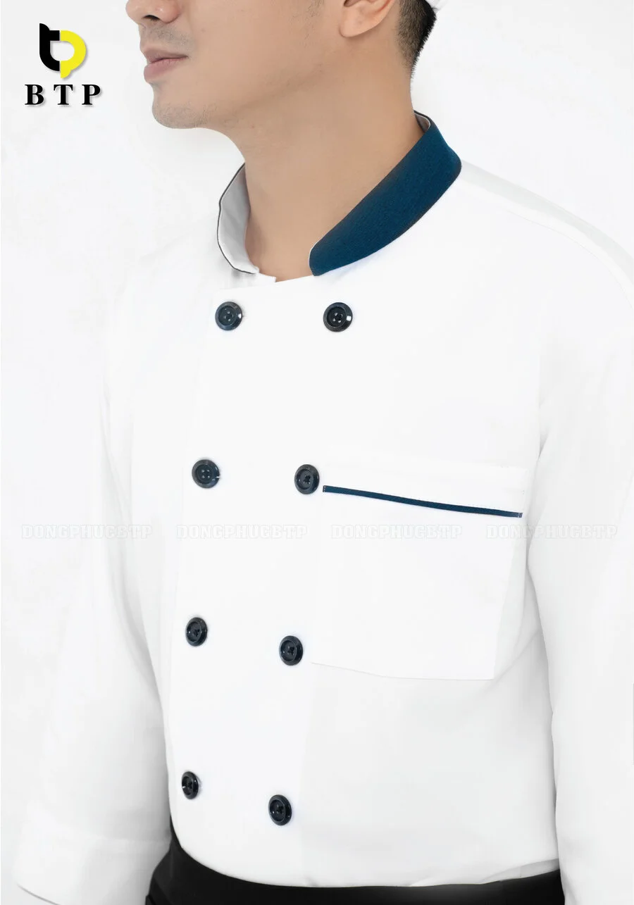 • Cổ áo có thể thêu logo của nhà hàng hoặc tên nhân viên để tạo sự chuyên nghiệp và nhận diện thương hiệu