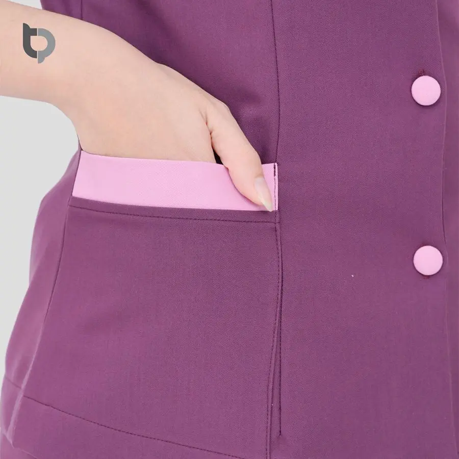 Chất liệu: Được may từ vải lanh cao cấp mềm mịn, đảm bảo thấm hút mồ hôi tốt, co giãn nhẹ và ít nhăn. Chất liệu nhẹ nhàng, thoáng khí, phù hợp với môi trường spa sang trọng, mang lại sự thoải mái tối đa cho nhân viên khi vận hành dịch vụ. Đồng phục spa BTP 03 có thiết kế bền màu, dễ giặt ủi, chống bám bụi và mùi hiệu quả.