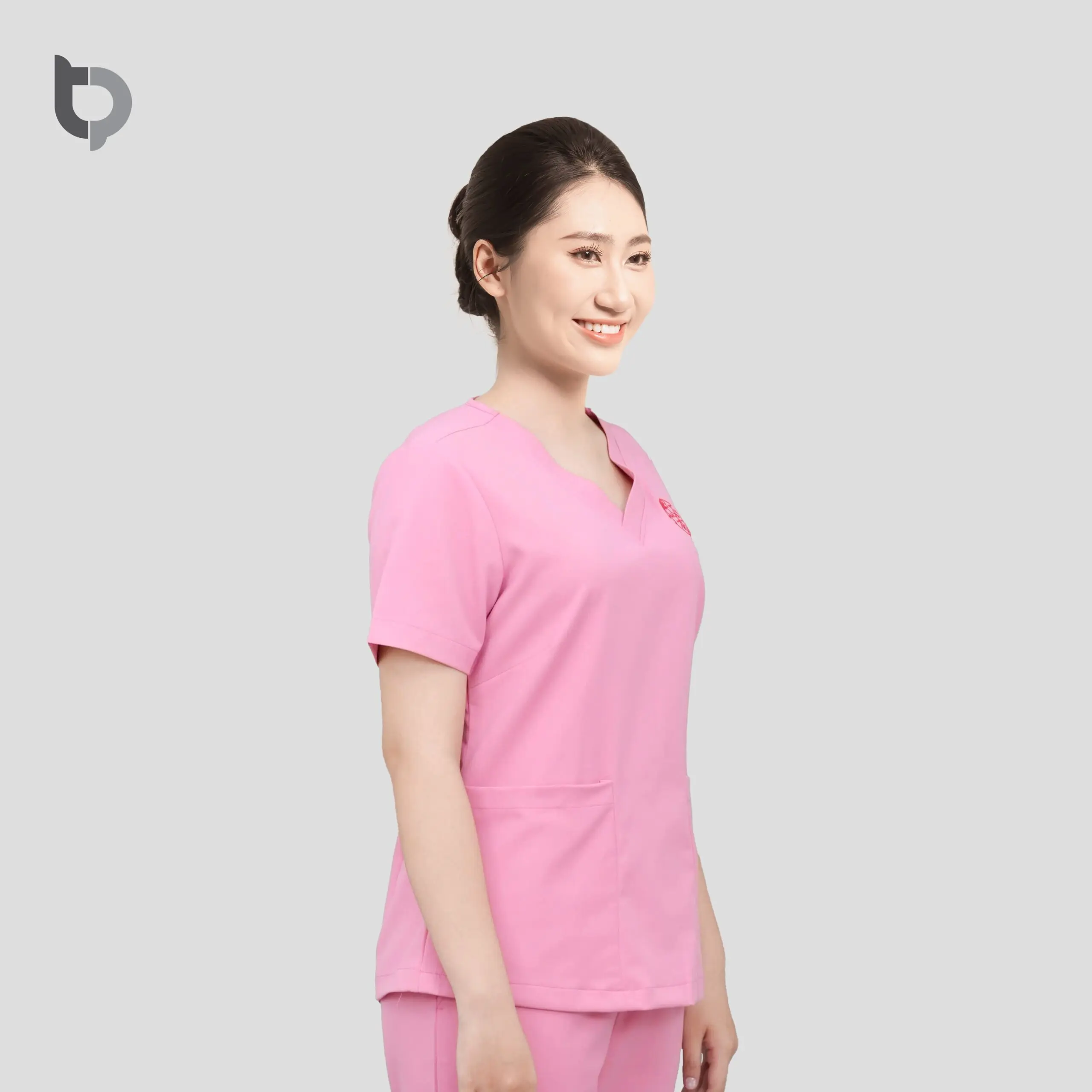 Chất liệu: Được may từ sợi vải cao cấp mềm mịn, đảm bảo thấm hút mồ hôi tốt, co giãn nhẹ và ít nhăn. Chất liệu nhẹ nhàng, thoáng khí, phù hợp với môi trường spa sang trọng, mang lại sự thoải mái tối đa cho nhân viên khi vận hành dịch vụ. Mẫu đồng phục spa BTP 02 có thiết kế bền màu, dễ giặt ủi, chống bám bụi và mùi hiệu quả.