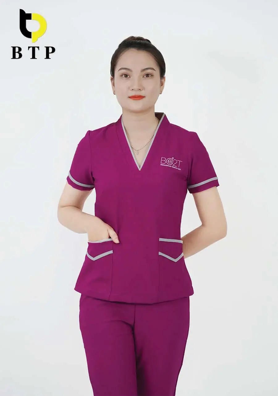 Chất liệu: Được may từ chất liệu nhập khẩu cao cấp, mềm mịn, đảm bảo thấm hút mồ hôi tốt, co giãn nhẹ và ít nhăn. Chất liệu đồng phục spa 07 nhẹ nhàng, thoáng khí, phù hợp với môi trường spa sang trọng, mang lại sự thoải mái tối đa cho nhân viên khi vận hành dịch vụ. Thiết kế bền màu, dễ giặt ủi, chống bám bụi và mùi hiệu quả.