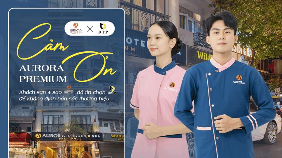 Sắc màu và kiểu dáng đồng phục được Đồng phục công sở chăm chút tỉ mỉ, thể hiện sự chuyên nghiệp và đẳng cấp của Aurora Premium Hotel. Đồng thời, bộ đồng phục còn giúp khách sạn dễ dàng được nhận diện và ghi nhớ trong tâm trí khách hàng, xây dựng hình ảnh thương hiệu nhất quán và mạnh mẽ.