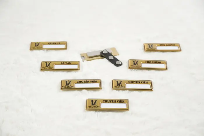 Bảng tên đồng phục, còn được gọi là name tag, thẻ tên nhân viên,… là phụ kiện được dùng để đeo lên cổ hay mang vào ngực áo. Mặt trước bảng được in UV hay khắc laser logo, họ tên nhân viên, chức danh cùng với tên đơn vị. Mặt sau được gắn kèm thêm ghim cài, nam châm hoặc băng dính để giúp cố định bảng hiệu lên ngực áo.
