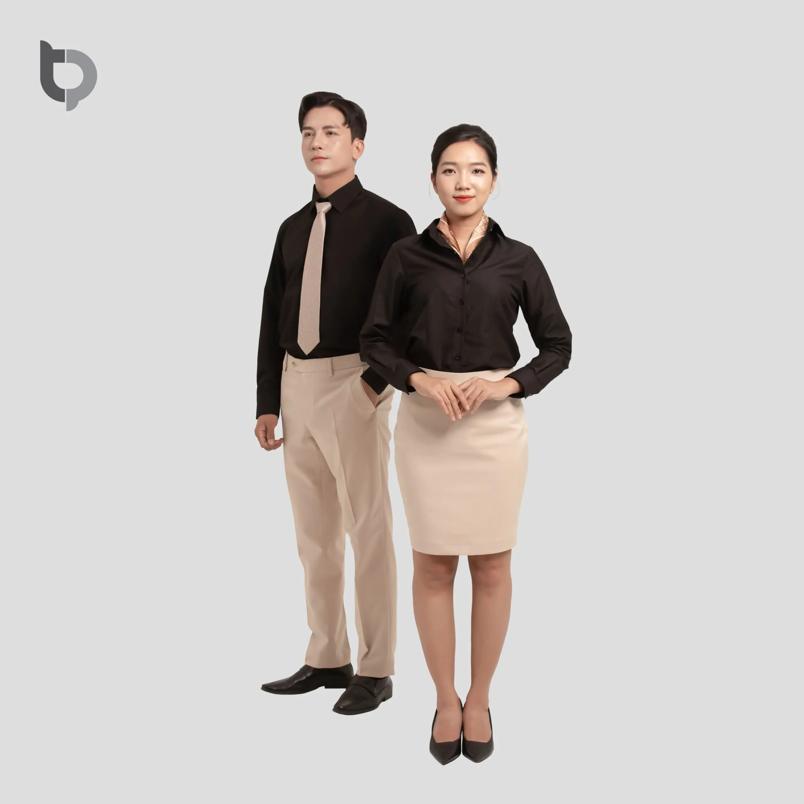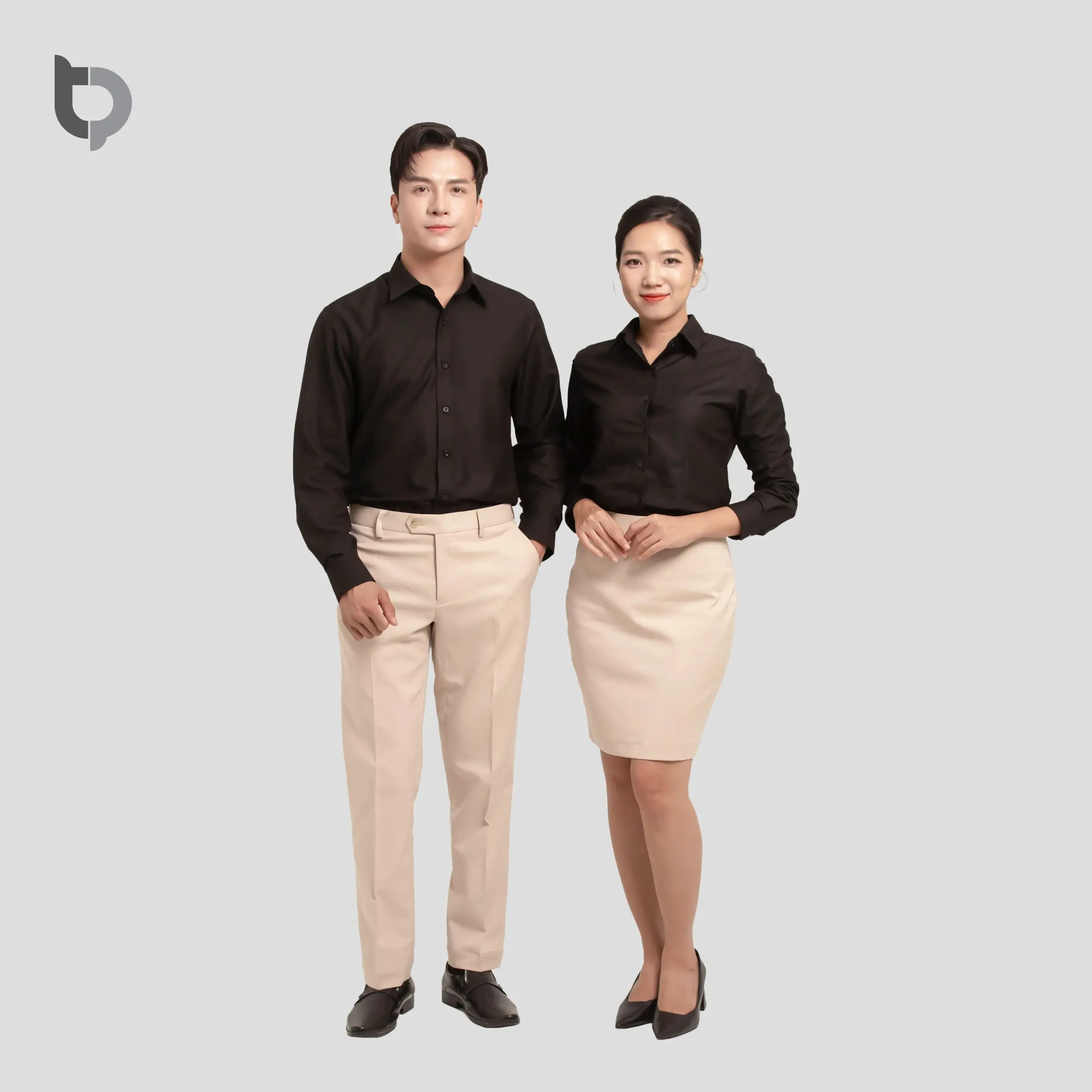Chất liệu: Chất liệu áo sơ mi đồng phục công sở thường được làm từ sợi vải cao cấp, mang lại độ thoáng khí, thấm hút mồ hôi tốt và ít nhăn. BTP sử dụng chất liệu nhập khẩu cao cấp với bề mặt mịn, bền màu và dễ bảo quản. Chất liệu đảm bảo sự thoải mái khi mặc cả ngày, phù hợp với môi trường công sở chuyên nghiệp.
