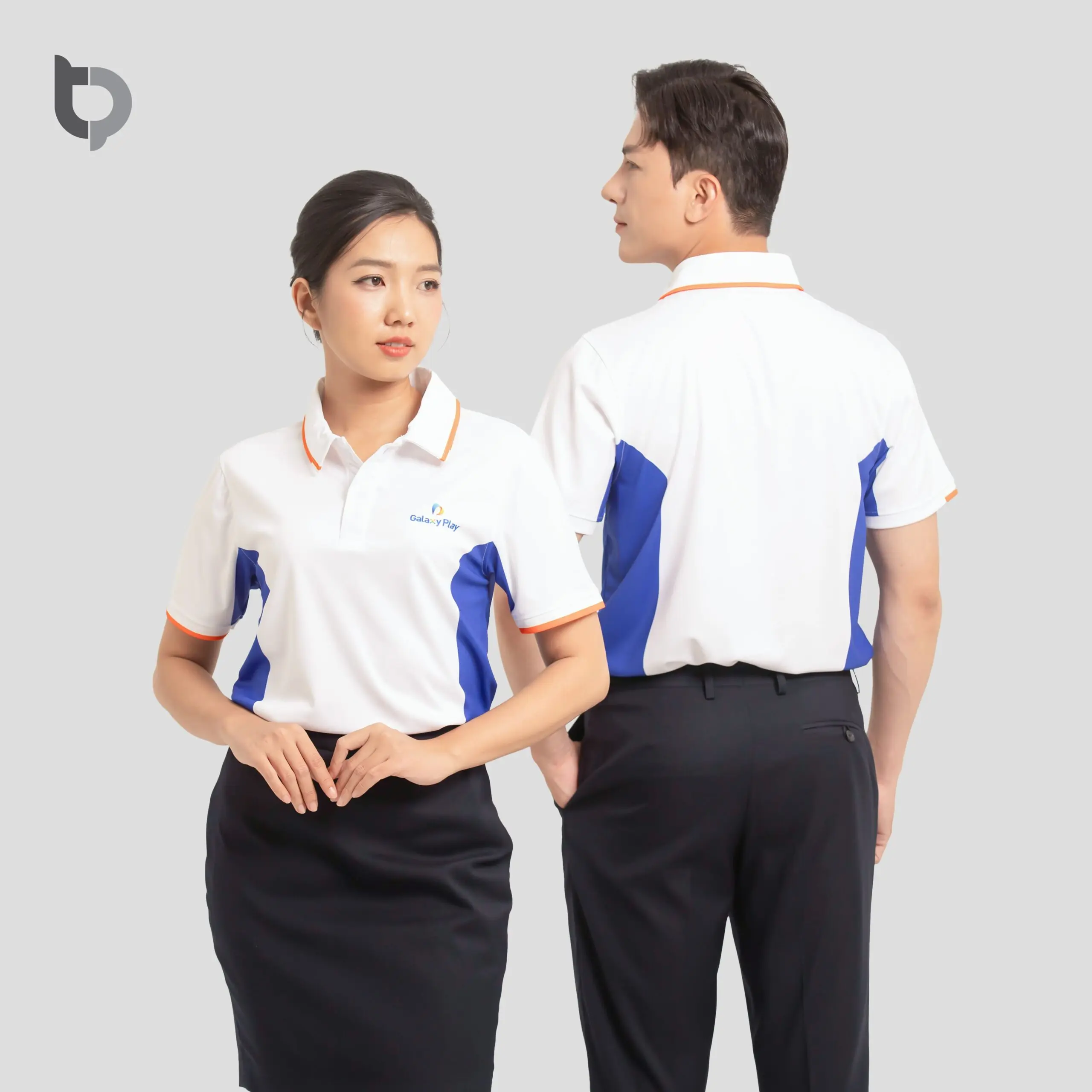 Form dáng và thiết kế: Form áo polo BTP 05 hiện đại – ôm nhẹ phần vai và tay, thân suông vừa vặn tạo cảm giác chuyên nghiệp, lịch sự. Cổ áo đứng phom, bo tay dệt cao cấp, đường may tỉ mỉ, tinh tế. Có thể phối viền cổ – tay hoặc thêu logo theo nhận diện thương hiệu.