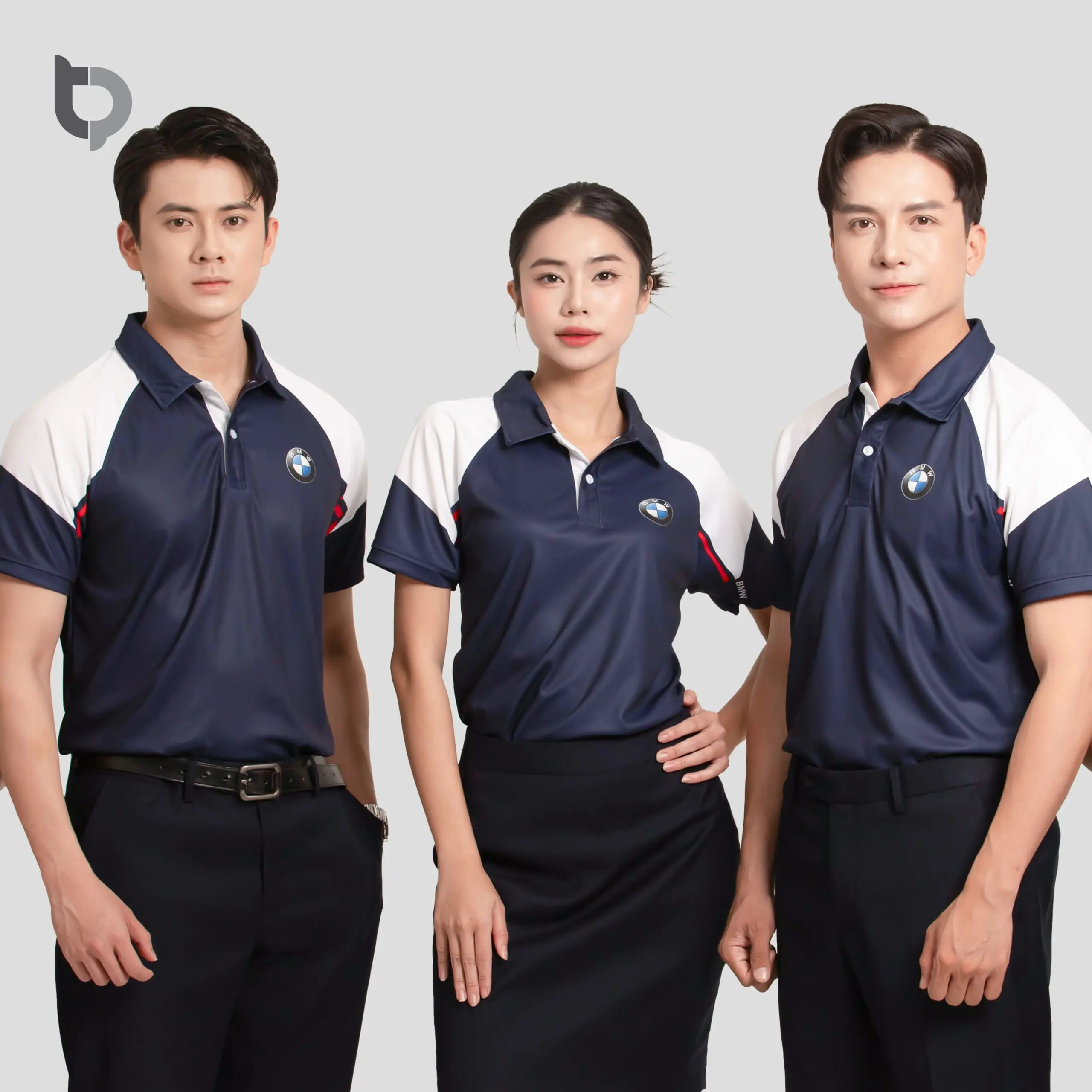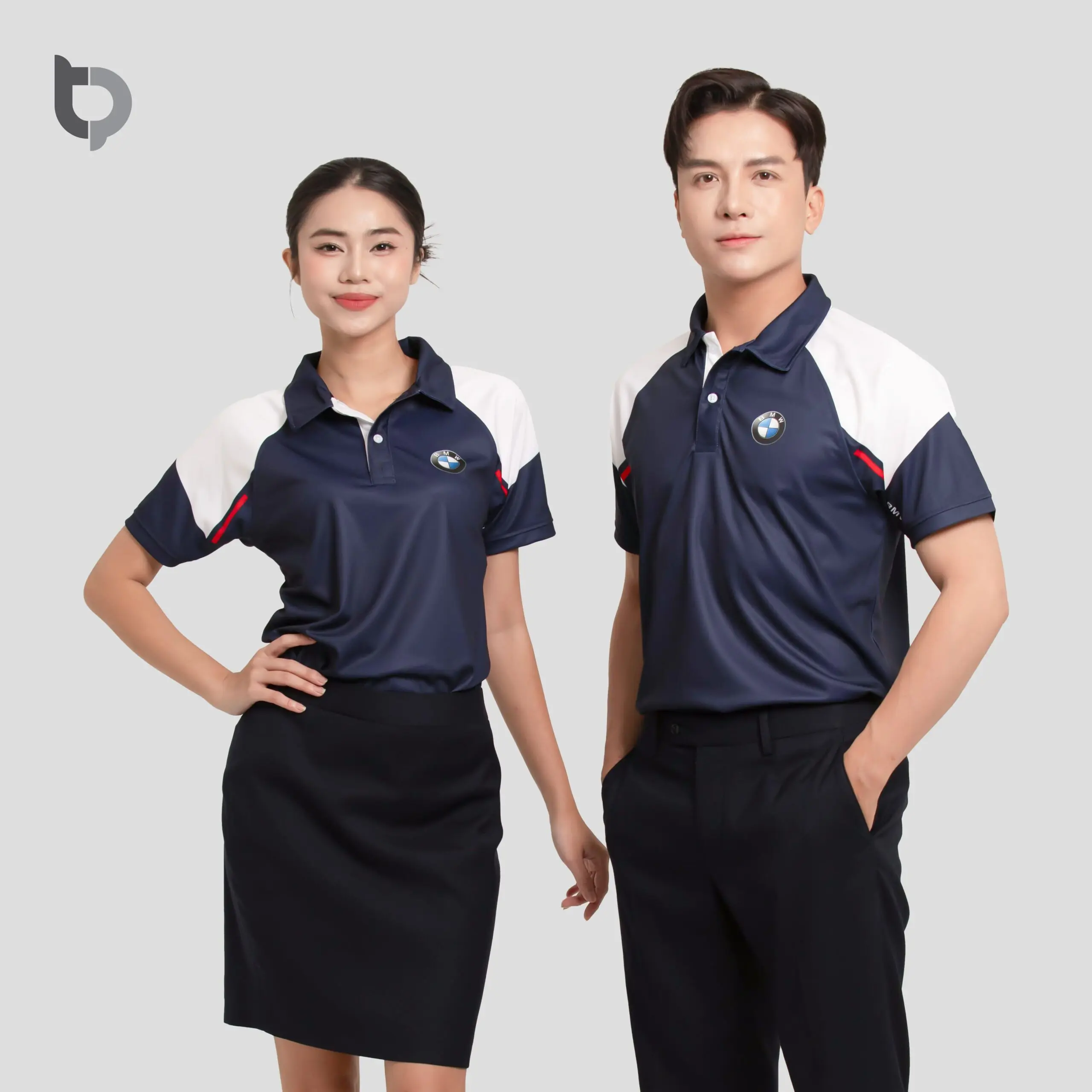 Form dáng và thiết kế: Form áo polo BTP 02 hiện đại – ôm nhẹ phần vai và tay, thân suông vừa vặn tạo cảm giác chuyên nghiệp, lịch sự. Cổ áo đứng phom, bo tay dệt cao cấp, đường may tỉ mỉ, tinh tế. Có thể phối viền cổ – tay hoặc thêu logo theo nhận diện thương hiệu.