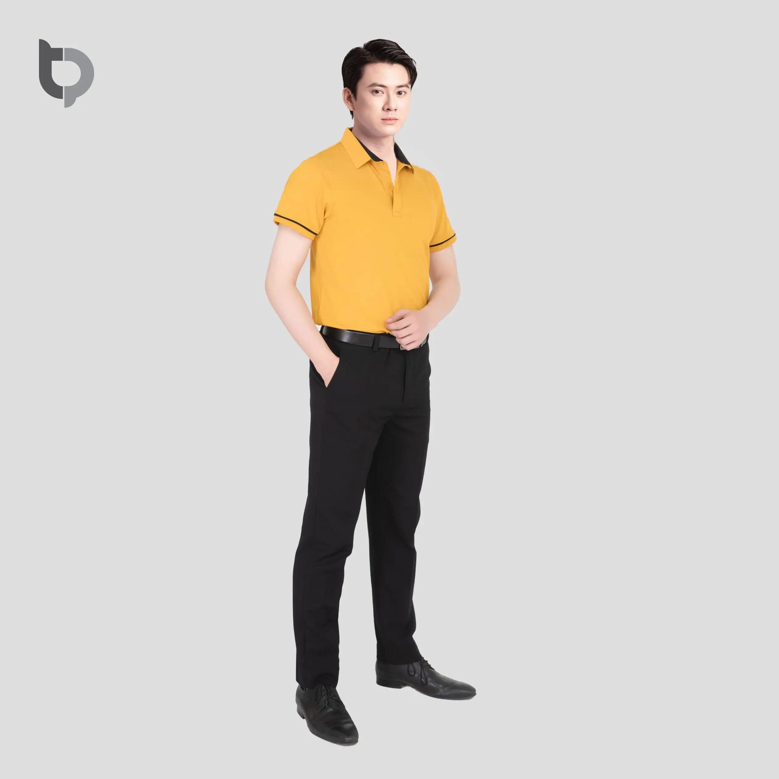 Form dáng và thiết kế: Form áo thun polo BTP 09 hiện đại – ôm nhẹ phần vai và tay, thân suông vừa vặn tạo cảm giác chuyên nghiệp, lịch sự. Cổ áo polo đồng phục đứng phom, bo tay dệt cao cấp, đường may tỉ mỉ, tinh tế. Có thể phối viền cổ – tay hoặc thêu logo theo nhận diện thương hiệu.